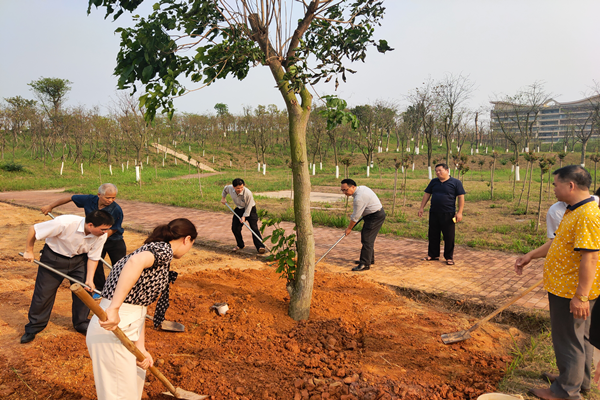 为深入贯彻落实习近平总书记关于“学党史、悟思想、办实事、开新局”的重要指示精神,开展“为群众办实事”主题党日活动,结合本校的实际情况,为学校增添绿色,后勤党支部全体党员自愿捐款购买了一棵胸径17cm高4m冠幅3.5m的红花风铃木,于4月1日下午组织全体党员到校内北面纪念林开展党日活动,为湾大校园增添绿荫。