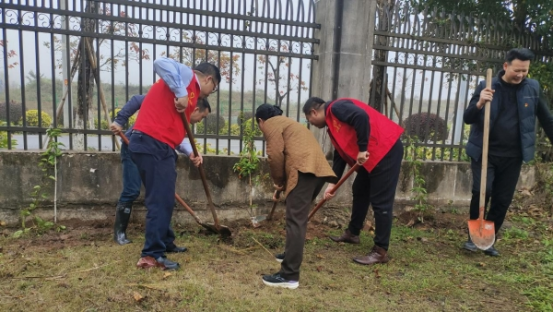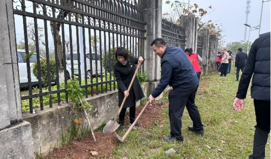 3月11日上午,机关党委后勤基建处党支部联合北部湾银行、桂璟恒律师事务所在校园开展“学习雷锋好榜样,植树造林美校园”主题党日活动,在东门南面围墙处种植炮仗花。