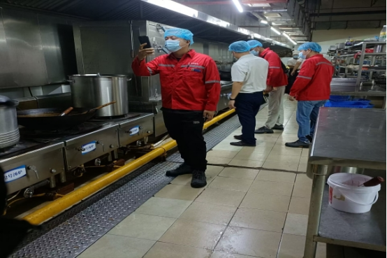 在东区食堂、西区食堂以及国交中心,全体检查人员认真进行深入细致检查,检查内容包括是否具有卫生许可证、健康证等行业证照,是否超范围经营,是否配备相应的灭火器等防火设备,是否存在私拉电线等安全隐患,并查巡其设施是否安全、合规,对不合理或者不合规的行为进行口头督促整改和下发监督整改意见书的方式要求整改。