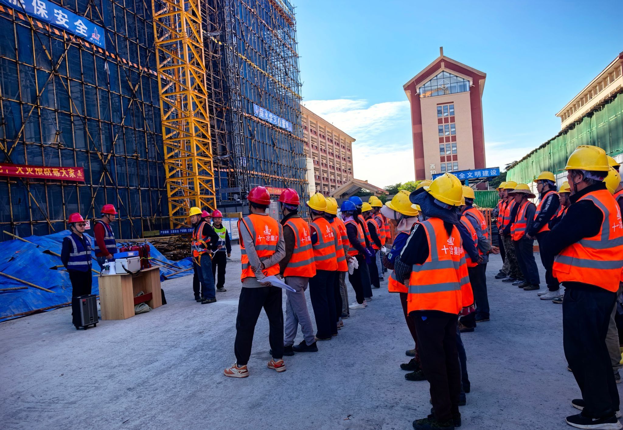我校第三食堂项目正处于多工序交叉施工的关键阶段,加之冬季火灾风险增高,为落实上级文件精神和学校工作部署,夯实安全生产责任,基建处于近期组织开展了安全生产检查及消防灭火应急演练活动。